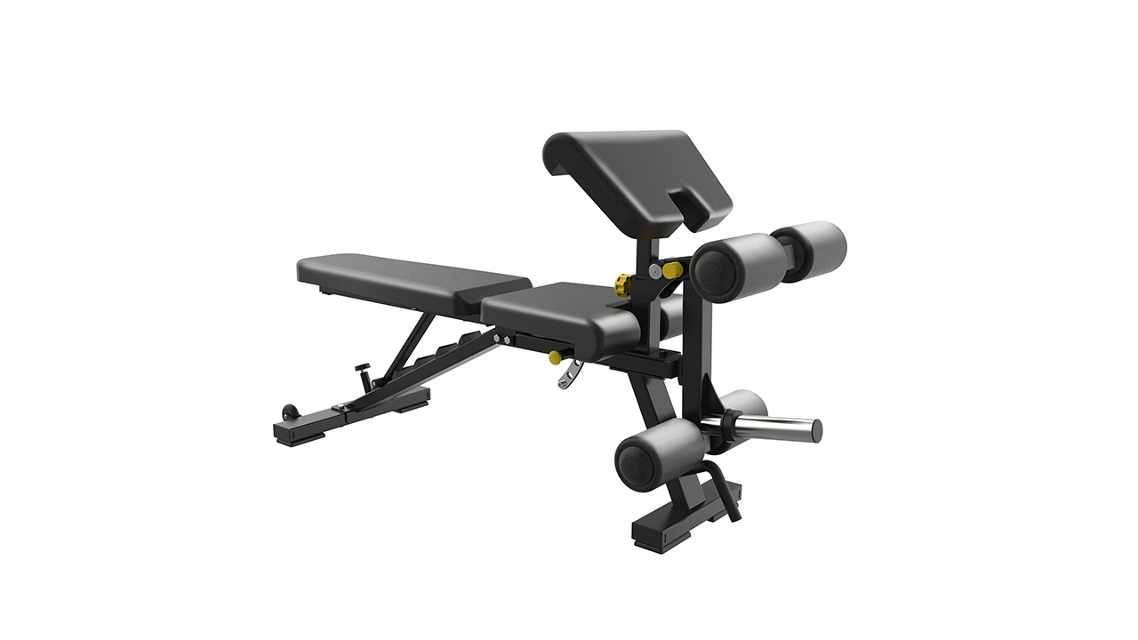 產品功能配合啞鈴使用實現平推、上斜、下斜的功能二頭肌,伸腿,臥曲腿,仰臥起坐